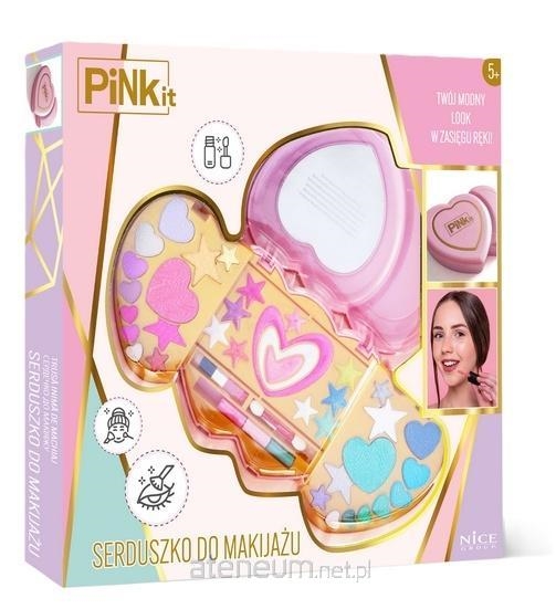 Piękne różowo-złote etui z logo w kształcie serca marki Pinkit. Zawiera lusterko oraz bocznie otwierane tacki z szeroką gamą cieni do powiek, róży, błyszczyków, pędzelków i aplikatorów oraz błyszczyk do ust w dwóch kolorach z podwójnym aplikatorem.Kosmetyki są wolne od parabenów. Wszystkie składniki są bezpieczne i testowane w włoskich laboratoriach.