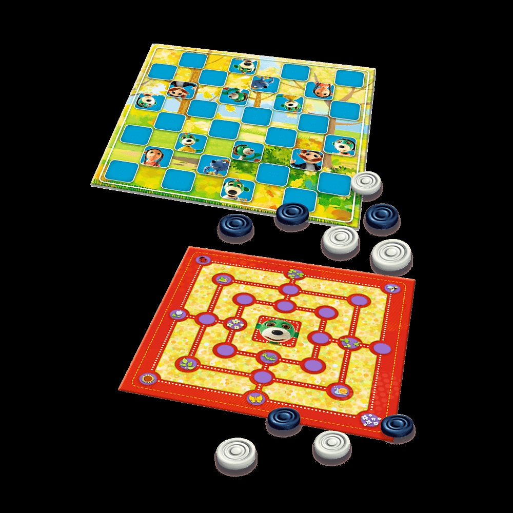 Rodzinna gra planszowa Warcaby i Młynek to tradycyjnie dobra zabawa dla dzieci od 5 roku życia i dorosłych! Zostań strategiem planując po kilka ruchów do przodu, blokując lub usuwając pionki przeciwnika. Warcaby i Młynek to gry, które uczą podstaw taktyki oraz logicznego myślenia. Różnorodne warianty sprawiają, że Warcaby i Młynek niezmiennie bawią graczy w każdym wieku.