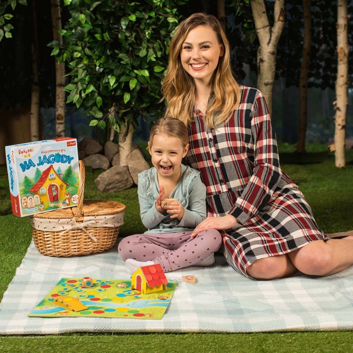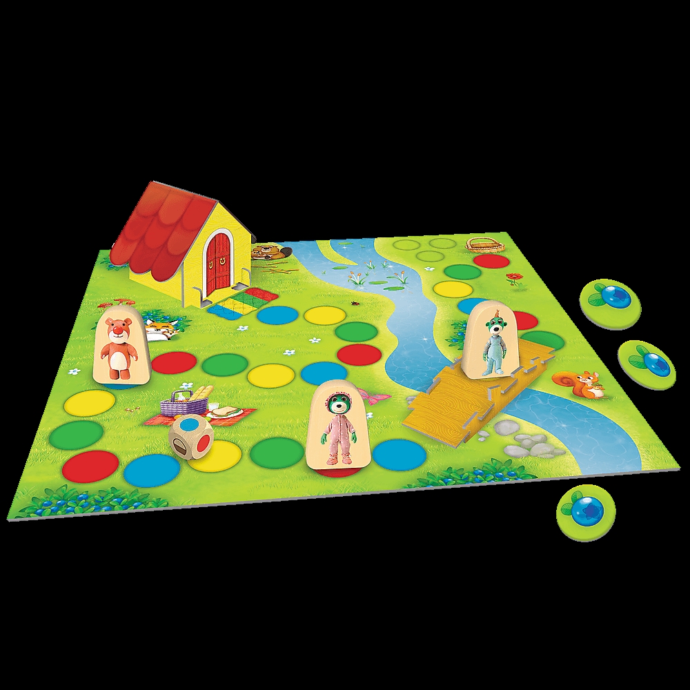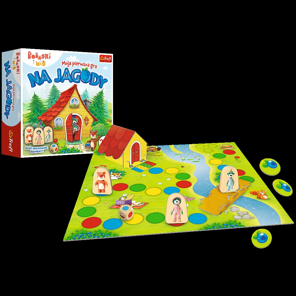 Na Jagody Moja Pierwsza Gra to gra edukacyjna oparta na wspólnej zabawie z ulubionymi bohaterami bajki Bobaski i Miś z kultowej serii Rodzina Treflików.