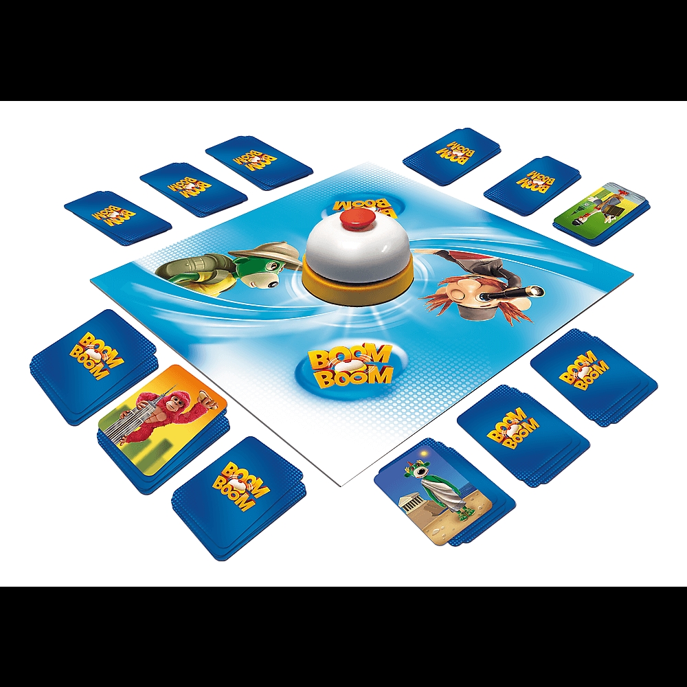 W grze Boom Boom gracze kompletują karty z takimi samymi wzorami, wymieniając swoje z tymi na planszy. Po zebraniu zestawu gracz uderza w dzwonek i sygnalizuje zebranie gotowego stosu. Gracze mogą polować na karty tego samego typu, dzięki czemu rozgrywka jest jeszcze bardziej emocjonująca. Zbierz odpowiednią liczbę zestawów wzorów i zostań zwycięzcą!