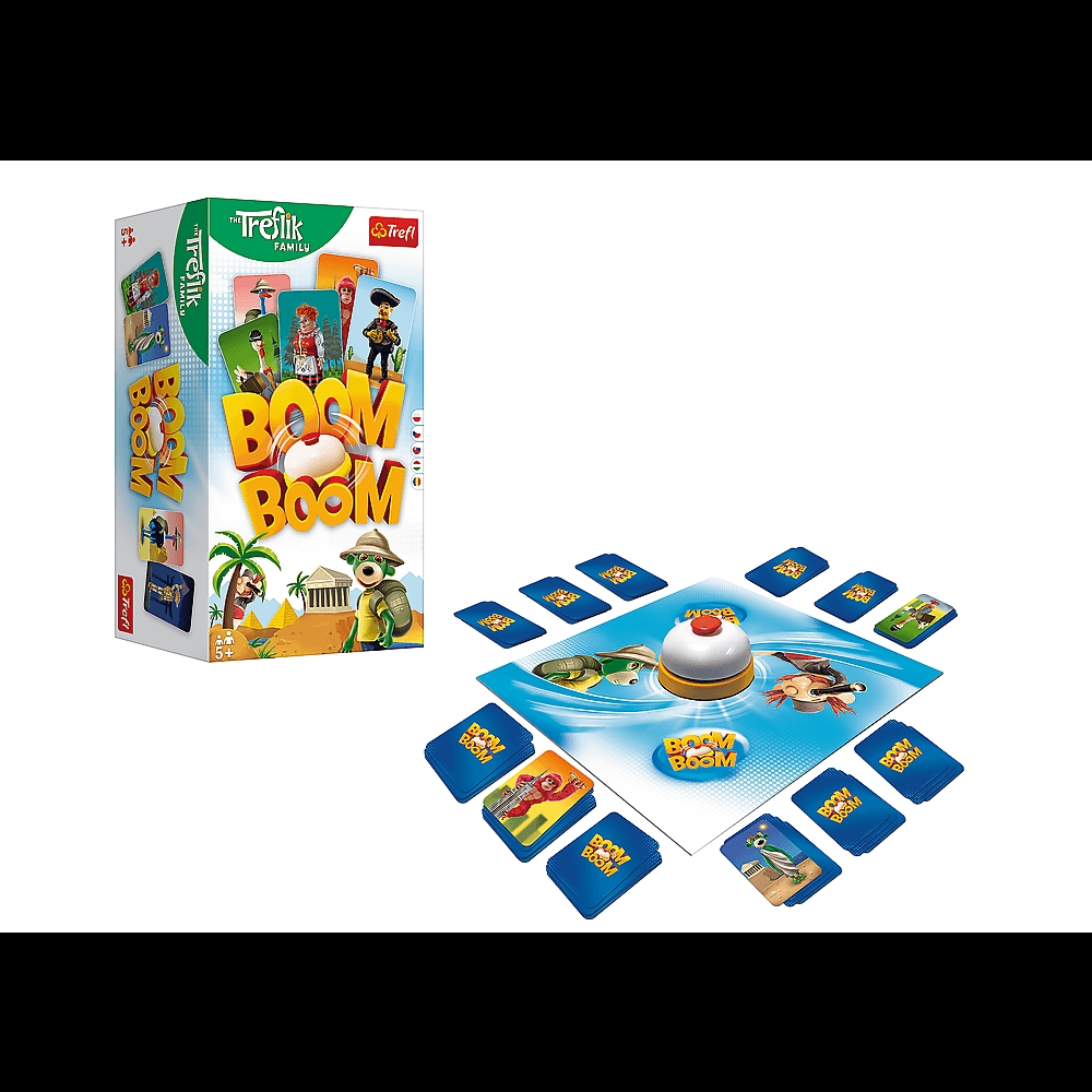 Masz dosyć nudy? Boom Boom Rodzina Treflików to niezwykle dynamiczna rozgrywka pełna fantastycznej zabawy. Wykaż się refleksem i spostrzegawczością. Działaj szybko, nie ma ani chwili do stracenia! W Boom Boom wszyscy grają jednocześnie. Wygrywa ten, kto pierwszy zbierze wszystkie potrzebne karty.