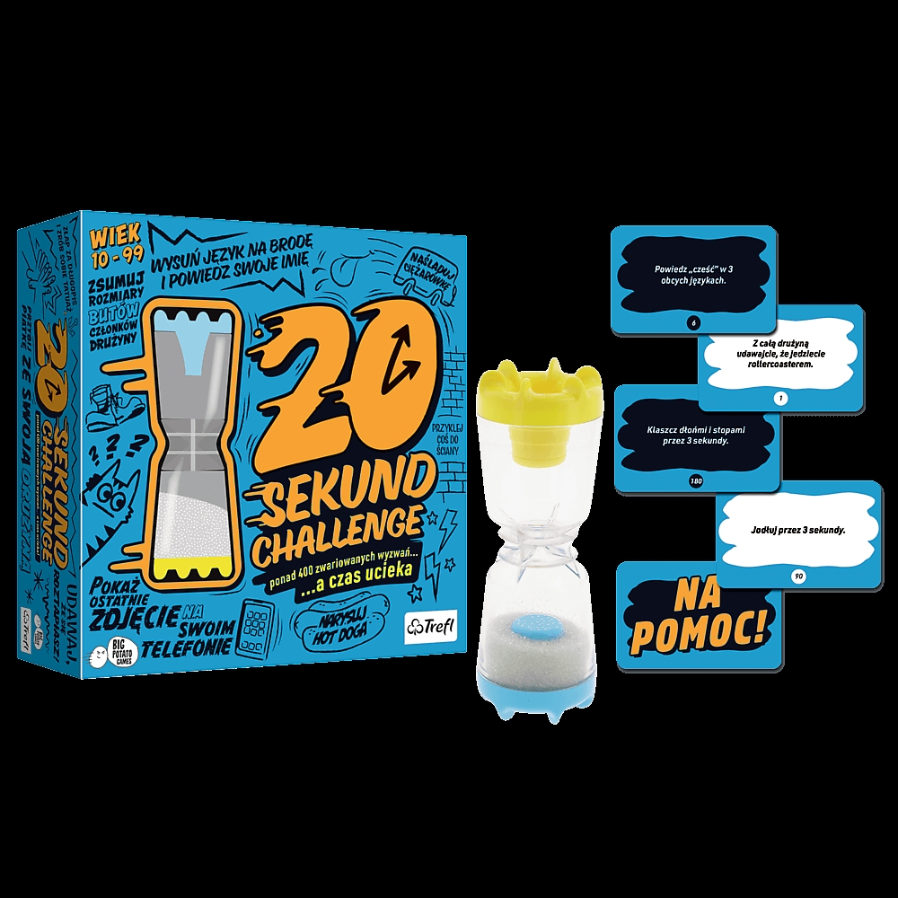 20 Sekund Challenge to wyjątkowa gra familijna, w której na uczestników czeka ponad 400 różnych wyzwań! Czas ucieka – na każde wyzwanie masz 20 sekund!