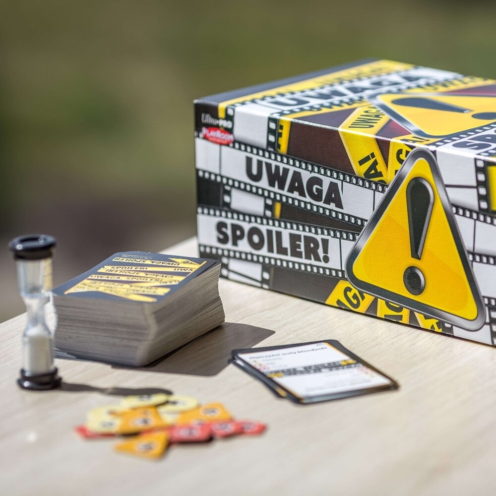 W grze Uwaga, Spoiler! zadaniem uczestników jest umiejętne naprowadzenie drużyny na wskazany na karcie film lub serial. Do każdego tytułu dodana jest lista spoilerów, których użycie oznacza utratę punktów, więc uważaj na to, co mówisz! Musisz wykazać się kreatywnością i umiejętnie przybliżyć treść danego tytułu. I to w zaledwie minutę.