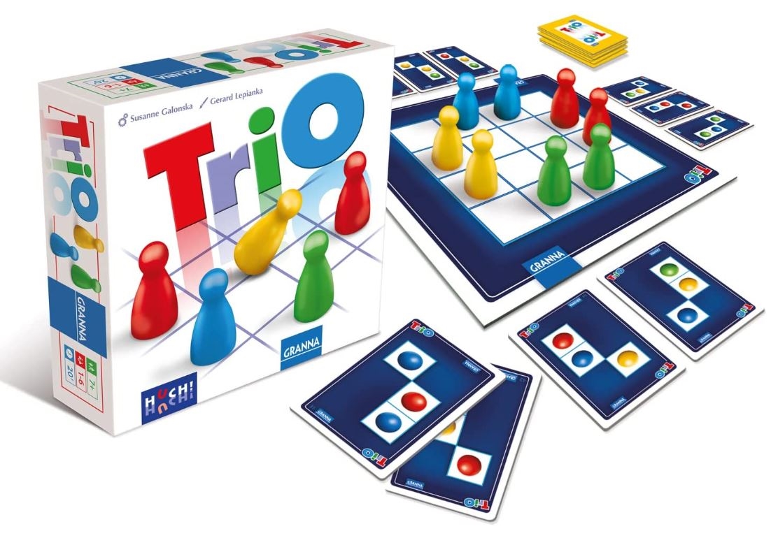 Trio to trzymająca w napięciu gra logiczna dla całej rodziny. Proste reguły i angażująca rozgrywka przyczyniły się do jej popularności. W grze Trio gracze będą przestawiali jeden z pionów na planszy, tak by stworzyć ustawienie wskazane na jednej z kart. Zwycięży osoba, która zdobędzie ich najwięcej.