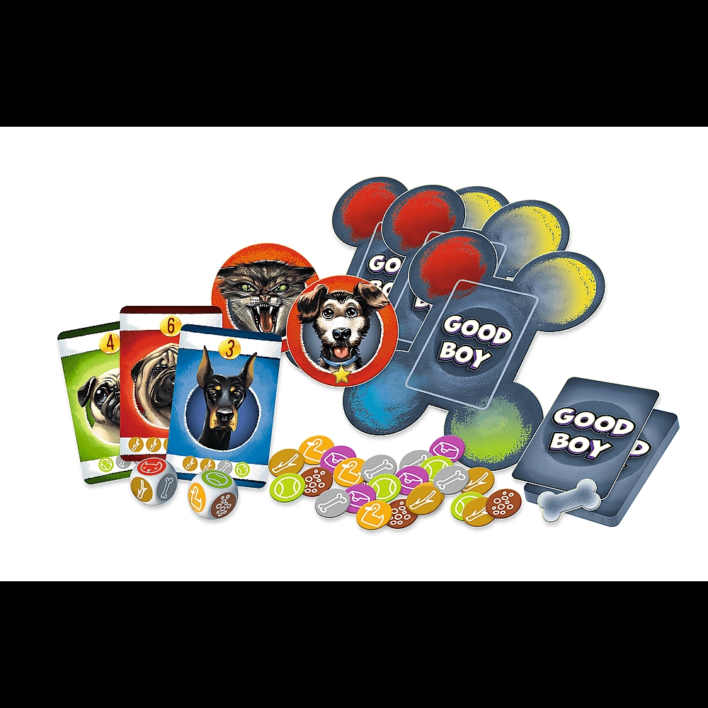 Good Boy to rodzinna gra planszowa, w której będziecie wabić do siebie psiaki, bawiące się na podwórku. Rzucając kośćmi, pozyskujcie żetony fantów i wymieniajcie je na karty psów. Każda karta przynosi Wam punkty, a ten, kto zdobędzie ich najwięcej, otrzyma tytuł największego przyjaciela tych uroczych czworonogów! Wydaje się proste? Nic bardziej mylnego! Grę utrudnia niesforny kot, który rozprasza psy i może pokrzyżować Wam plany.