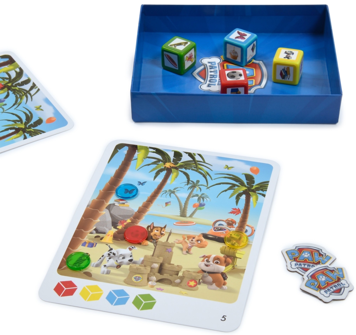 Dołącz do szczeniaków z Psiego Patrolu w szybkiej misji poszukiwania ukrytych obrazków. Zacznij od rzucenia kostką. Ścigaj się w wyszukiwaniu i rozpoznawaniu obrazków, które wypadły na kostkach. Po znalezieniu obrazka umieść nad nim kolorową kropkę, aby go śledzić. Pierwszy gracz, który znajdzie i zakryje wszystkie obrazki, wygrywa żeton. Wygrywa ten gracz, który na koniec gry posiada najwięcej żetonów. Rzuć, śledź i wygraj!
