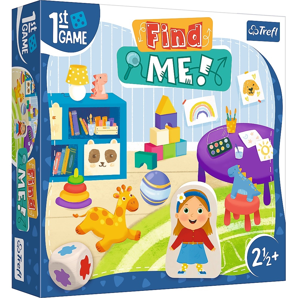 Find me to gra planszowa dla maluchów, w której wspólnie zbieracie kolorowe kartoniki z przedmiotami. Wszyscy kochają zabawę w chowanego — tym razem nie będziecie szukać swoich kolegów, tylko niesfornych przedmiotów, które schowały się w przedszkolu. Czy uda Wam się je wszystkie odszukać i rozpoznać ich kształty?