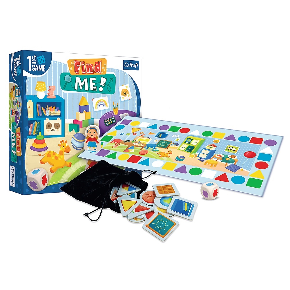 Find me to wspaniała zabawa dla całej rodziny! Dzieci podczas rozgrywki odnajdują na planszy kolory pól, rozpoznają kształty kartoników z woreczka, jedynie przy pomocy zmysłu dotyku oraz szukają przedmiotów na obrazku. Gra pobudza wyobraźnię przestrzenną, uczy współpracy, ćwiczy sprawność manualną i spostrzegawczość.