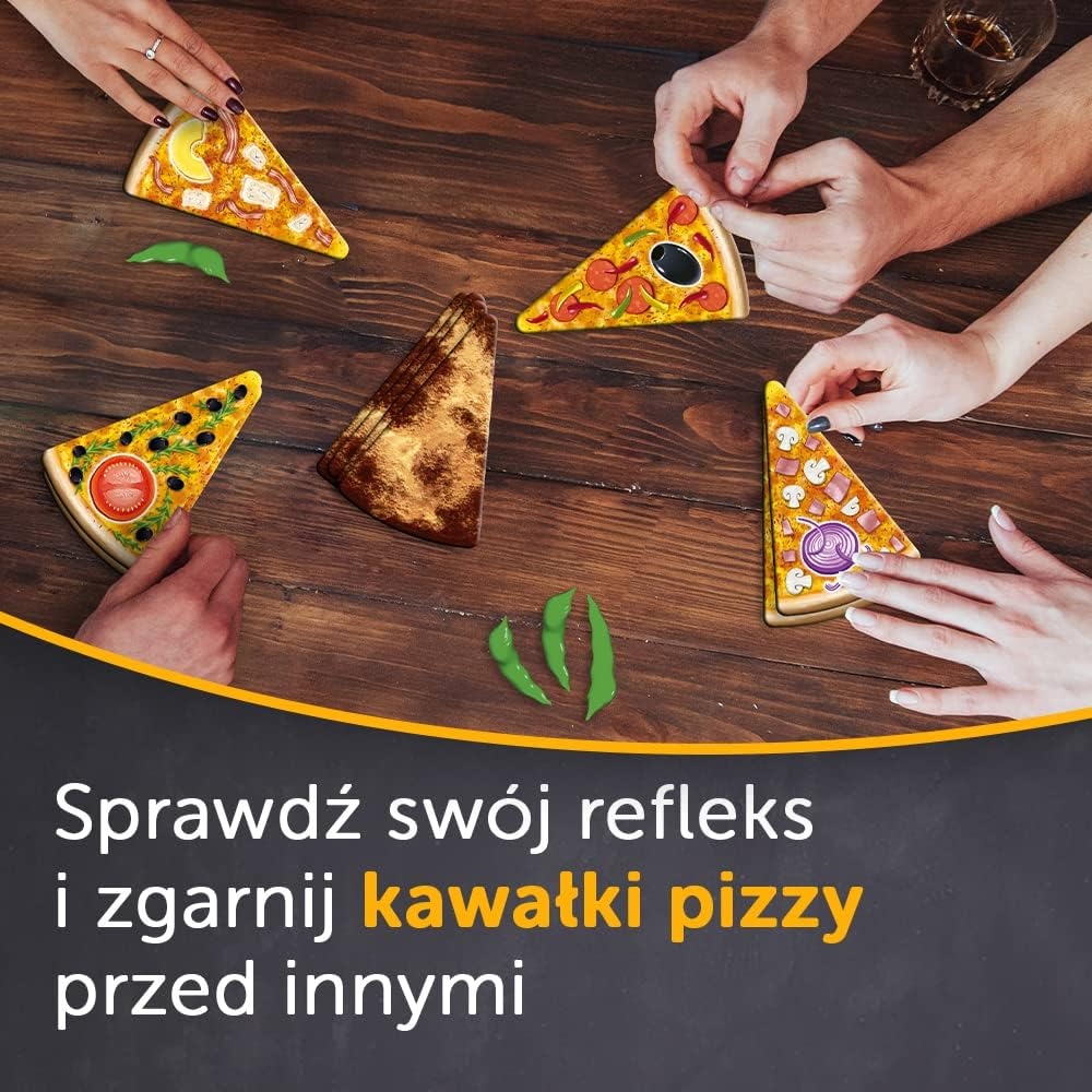 Podczas dynamicznej rozgrywki, staracie się dołożyć swoje karty w kształcie kawałków pizzy do odpowiedniego stosu. Musicie wykazać się refleksem, bo wszyscy gracze jednocześnie próbują pozbyć się kart ze swojej ręki. Znajdźcie pasujące składniki i zgarnijcie kawałki pizzy, zanim zrobią to inni. Uważajcie, bo chwila nieuwagi i w Wasze ręce trafi spalony placek, który pomniejszy pulę punktów!