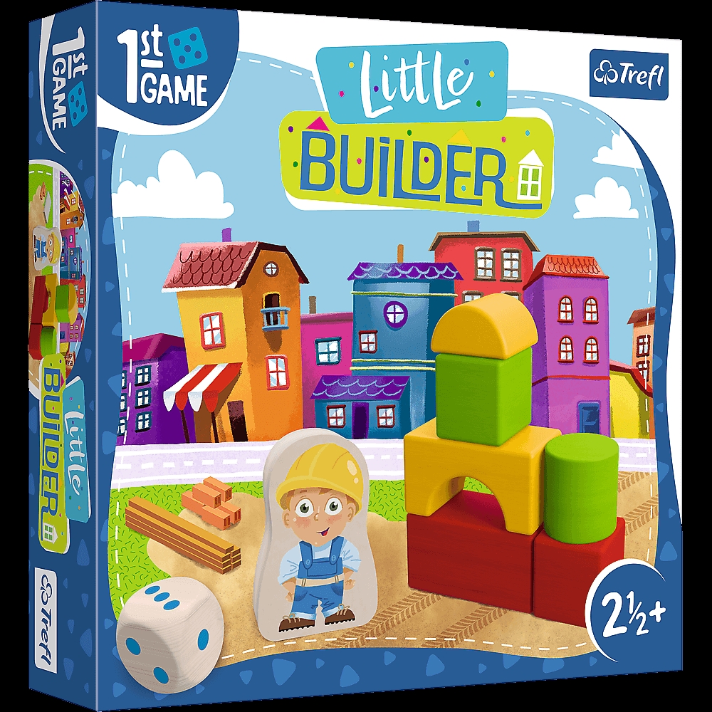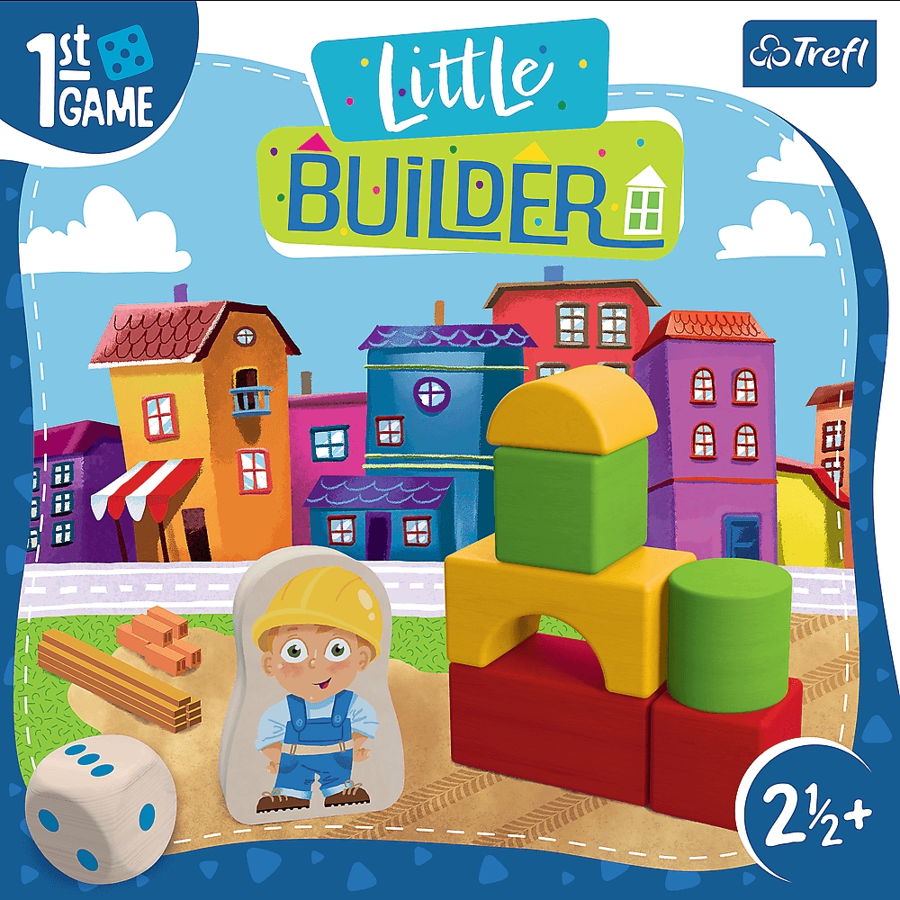 Little Builder to gra planszowa dla maluchów, w której wspólnie zbieracie klocki, aby stworzyć nową budowlę. Waszym zadaniem jest zdobycie wszystkich elementów, zanim dotrzecie do mety lub nim pogoda pokrzyżuje plany i deszczomierz wypełni się żetonami kropelek deszczu. Jeśli pod koniec gry zebraliście komplet klocków, możecie wylosować kartę projektu i stworzyć swoją budowlę!