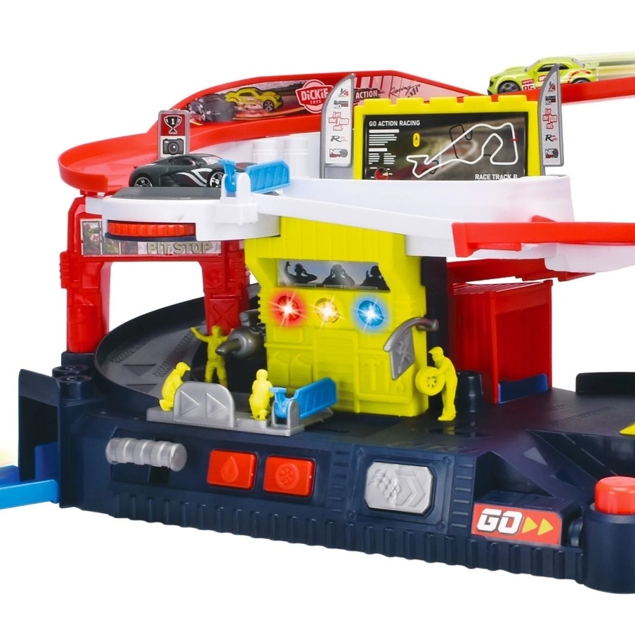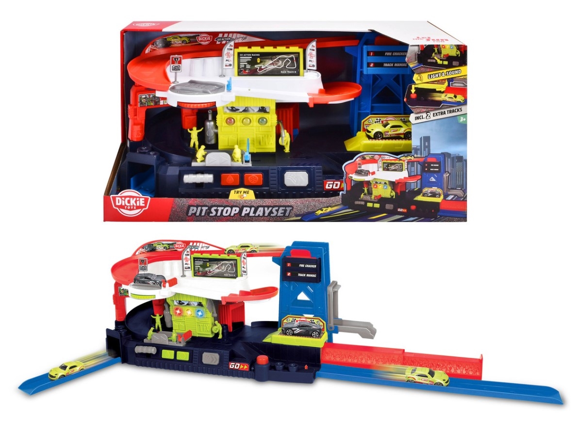 Dickie Pit Stop zestaw światło/dźwięk to idealna zabawka dla małych fanów wyścigów i motoryzacji. Ten wyjątkowy zestaw oferuje realistyczne doznania, przenosząc dzieci w świat profesjonalnych wyścigów i błyskawicznych napraw na torze. W zestawie znajduje się bogato wyposażony warsztat z efektami świetlnymi i dźwiękowymi, które urozmaicają każdą zabawę.
