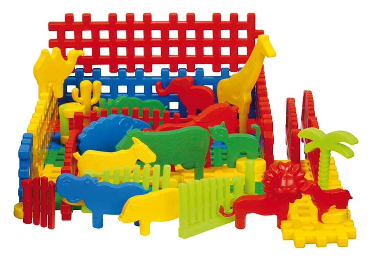 Zestaw zawiera elementy do budowy zagrody oraz figurki uwielbianych przez dzieci zwierzątek, takich jak żyrafa, wielbłąd, lew, słoń, krówka, baranek, piesek i kotek. Klocki są wykonane z wysokiej jakości tworzywa, które jest miękkie i bezpieczne nawet dla małych dzieci. Klocki mają pozytywny wpływ na kreatywność, wyobraźnię oraz rozwój manualny.