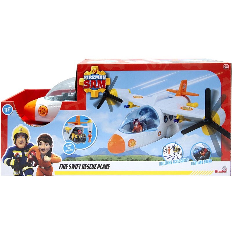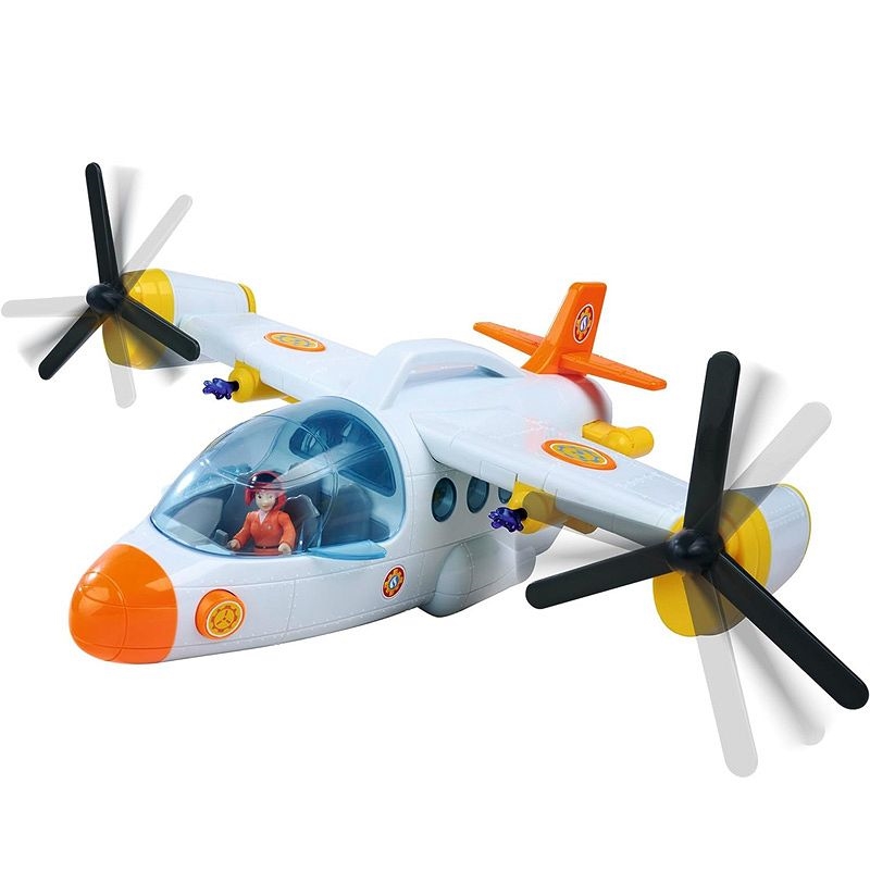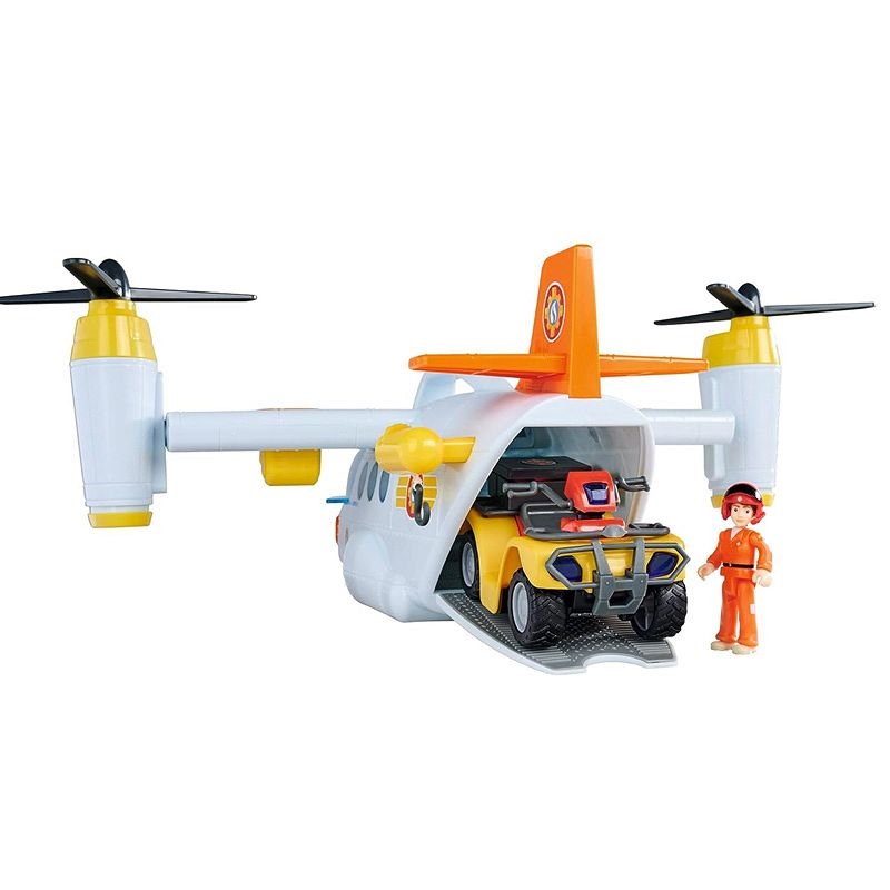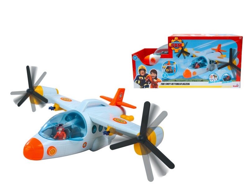 Imponujący samolot wiernie odzwierciedla najnowszy pojazd z 14 sezonu serialu, który pilotuje polska bohaterka Krystyna, samolot wyróżniają obracające się śmigła po bokach. Zaopatrzony jest w wyciągarkę linową, sprzęt ratowniczy można zaczepić do haka i uratować zwierzę w akcji, dzięki czemu dziecko z radością odtwarza misje ratunkowe znane ekranu. Wewnątrz znajduje się przycisk, za pomocą którego można włączyć światło i realistyczne dźwięki, ponadto jest tu otwierana ładownia do przechowywania Quada Mercury (brak w zestawie). Otwierany kokpit z miejscem na 4 figurki, drabina ułatwia wejście na pokład, części ruchome, które pozwalają na urozmaiconą zabawę w strażaka. Dwie strzały wodne można wystrzelić z armatek wodnych po naciśnięciu jednego przycisku, z dołączonymi figurkami Krystyny i koniem Kilo zanurzysz się w świecie bohaterów ukochanej animacji. Zabawki z serii Strażak Sam od Simba są oryginalne i bezpieczne dzięki nim poczujesz się częścią odtwarzanych z ekranu akcji ratowniczych.