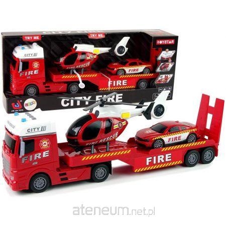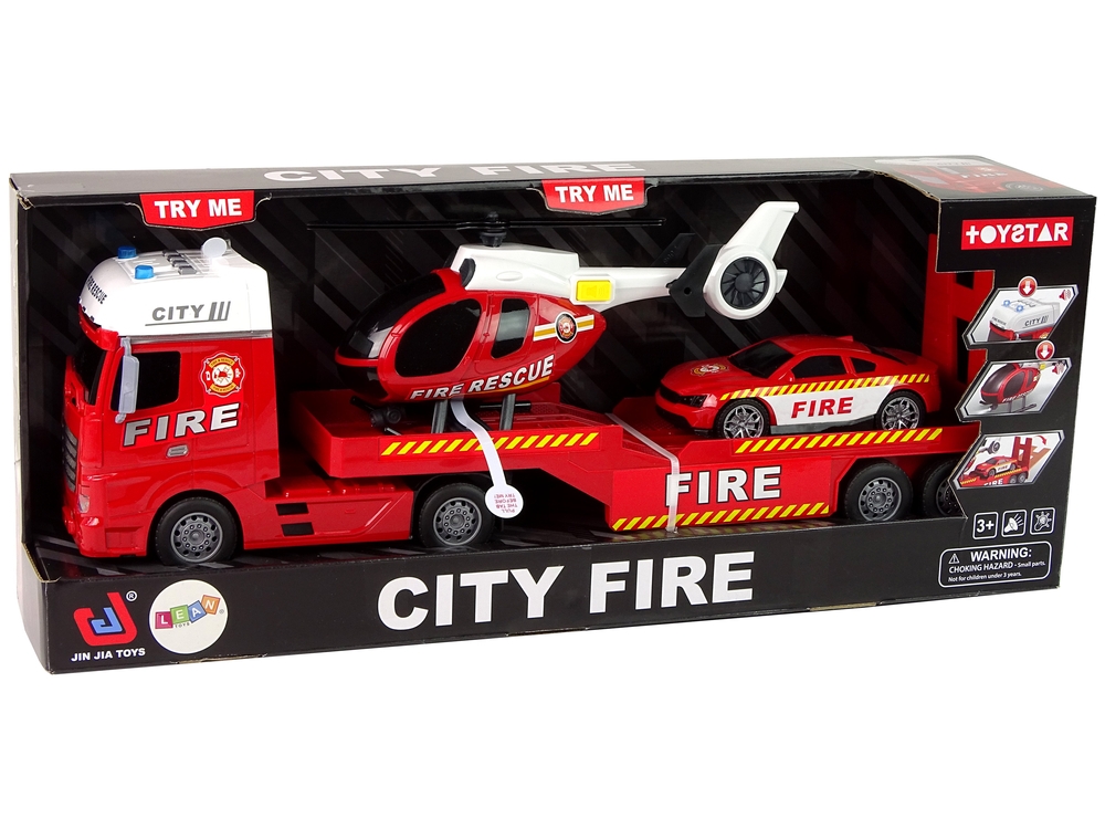 Zestaw Straż Pożarna Laweta Autko Helikopter Dźwięk Światła