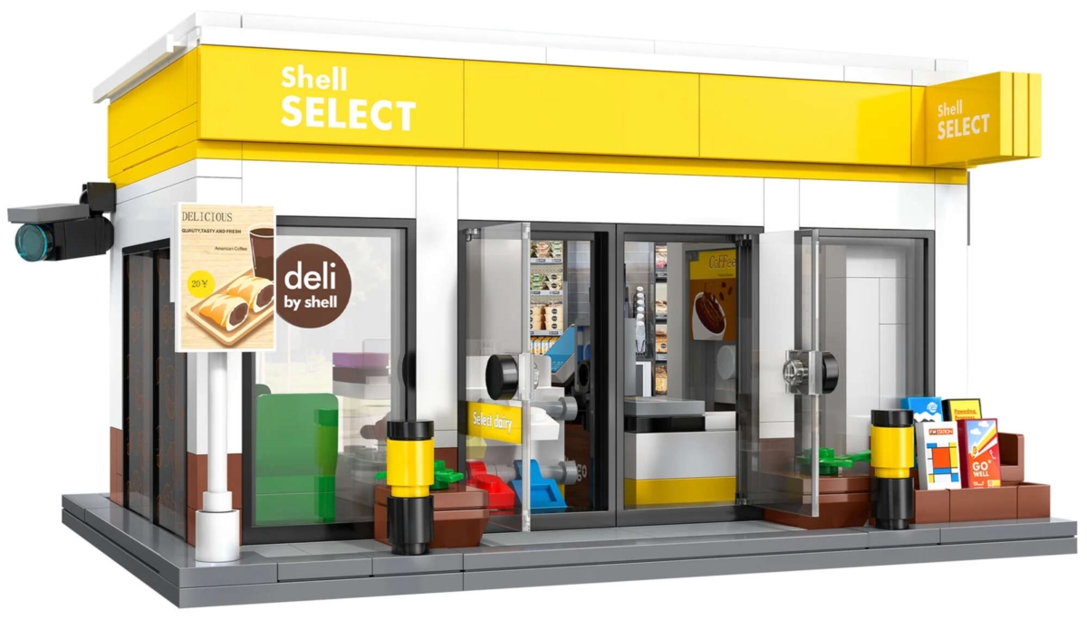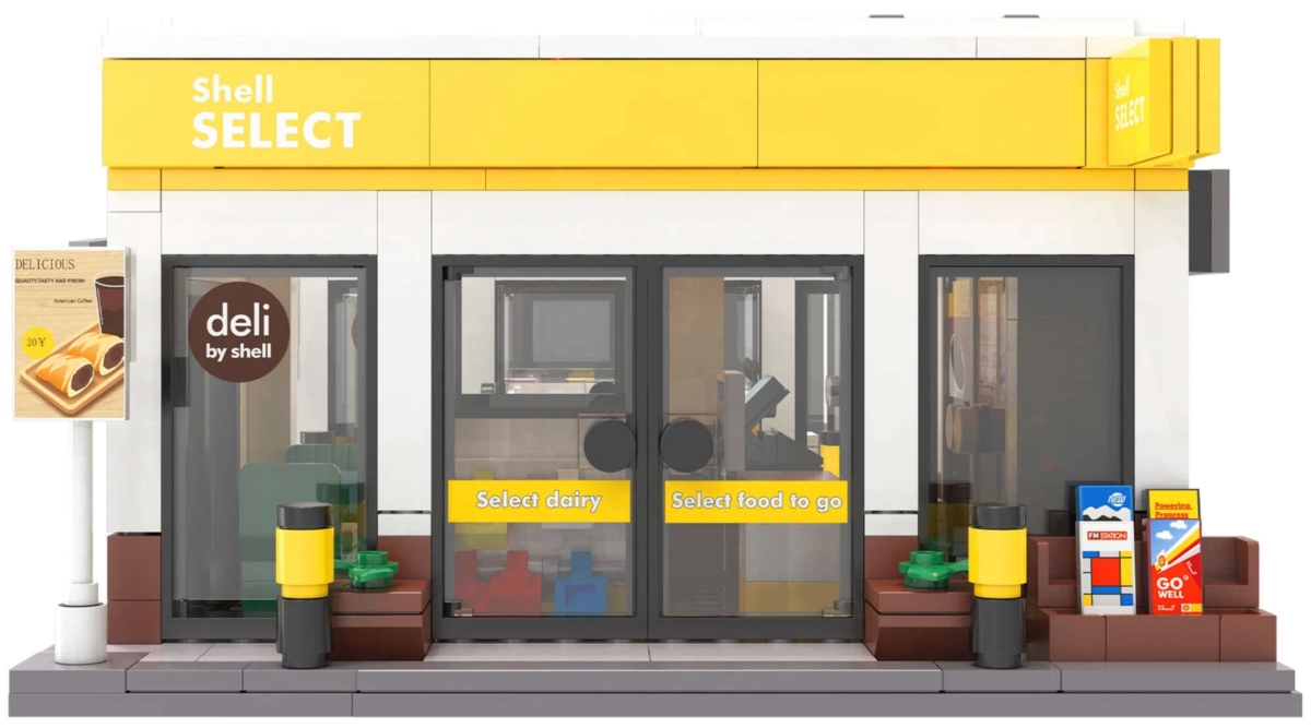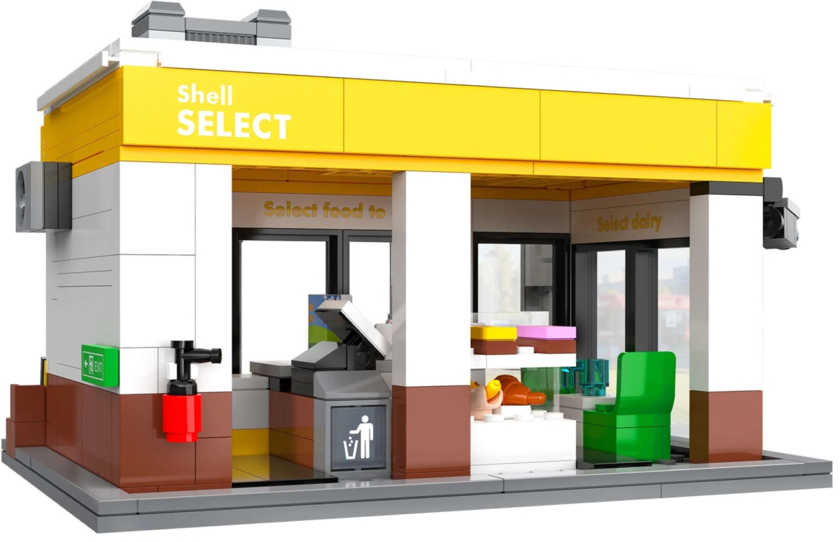 Zestaw składa się z 303 elementów i umożliwia samodzielne złożenie małego sklepiku marki Shell.