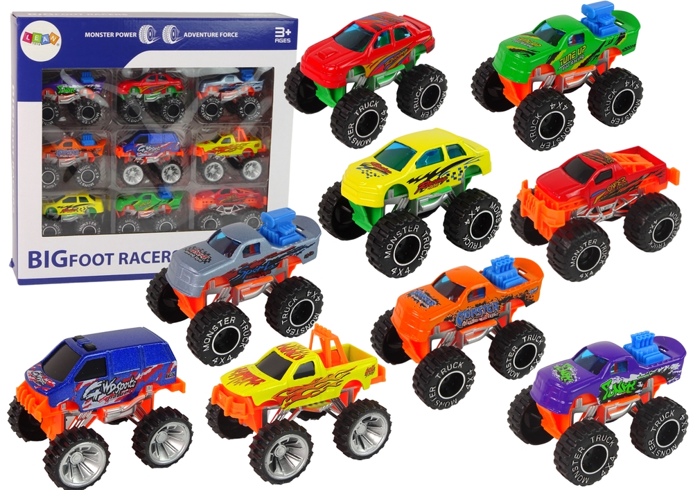 Zestaw Pojazdów Auta Terenowe Resorak Monster Truck Różne Kolory 9 szt.