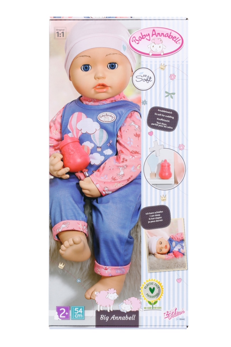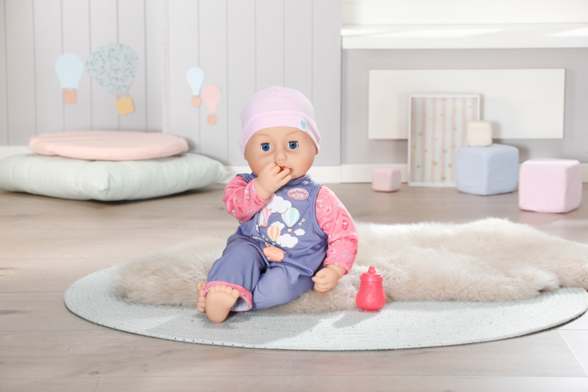 Lalka wyposażona jest w funkcję usypiania — kiedy ją położysz, zamknie oczy, sprawiając wrażenie, że zasypia. Jej miękki brzuszek sprawia, że jest idealna do przytulania. W zestawie znajduje się również butelka, dzięki której dzieci mogą symulować karmienie.