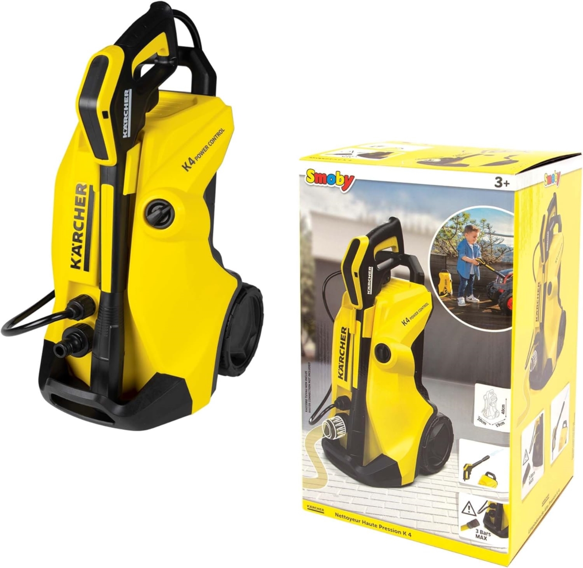 To prawdziwe miniaturowe urządzenie jest wierną repliką renomowanej myjki wysokociśnieniowej Karcher K4, zaprojektowanej specjalnie dla dzieci w wieku od 3 lat. Teraz Twoje dzieci mogą z łatwością samodzielnie czyścić swoje zabawki na zewnątrz i w ogrodzie, tak jak dorośli!