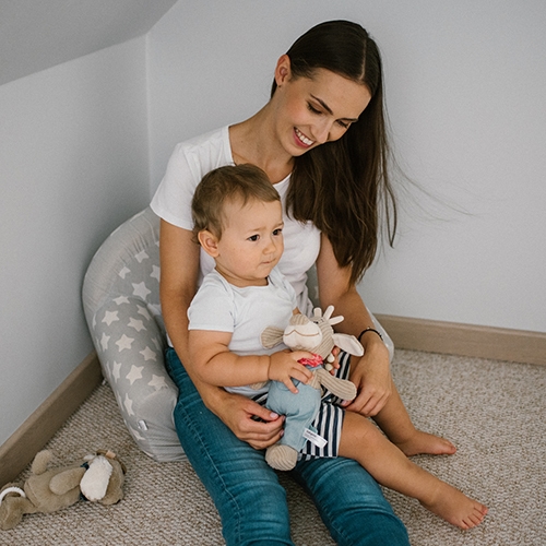 Różne faktury materiałów przyciągną uwagę maluszka. Z zabawki wydobywa się łagodna melodia, która uspokoi szkraba po dniu pełnym wrażeń.