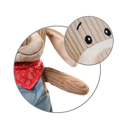Twój maluch rośnie i ochoczo poznaje wszystko, co go otacza. Zabawka z pozytywką i gryzakiem zapewni mu stymulację rozwoju, jakiej potrzebuje na co dzień. To maskotka z miękkiego sztruksu w jeansowych spodenkach i apaszce z miękkiej tkaniny.