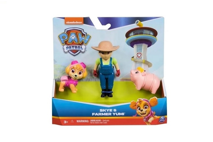 Dzieci mogą bawić się, tworząc scenki ratunkowe, w których Skye pomaga Farmerce Yumi opiekować się jej zwierzętami, takimi jak różowa świnka.