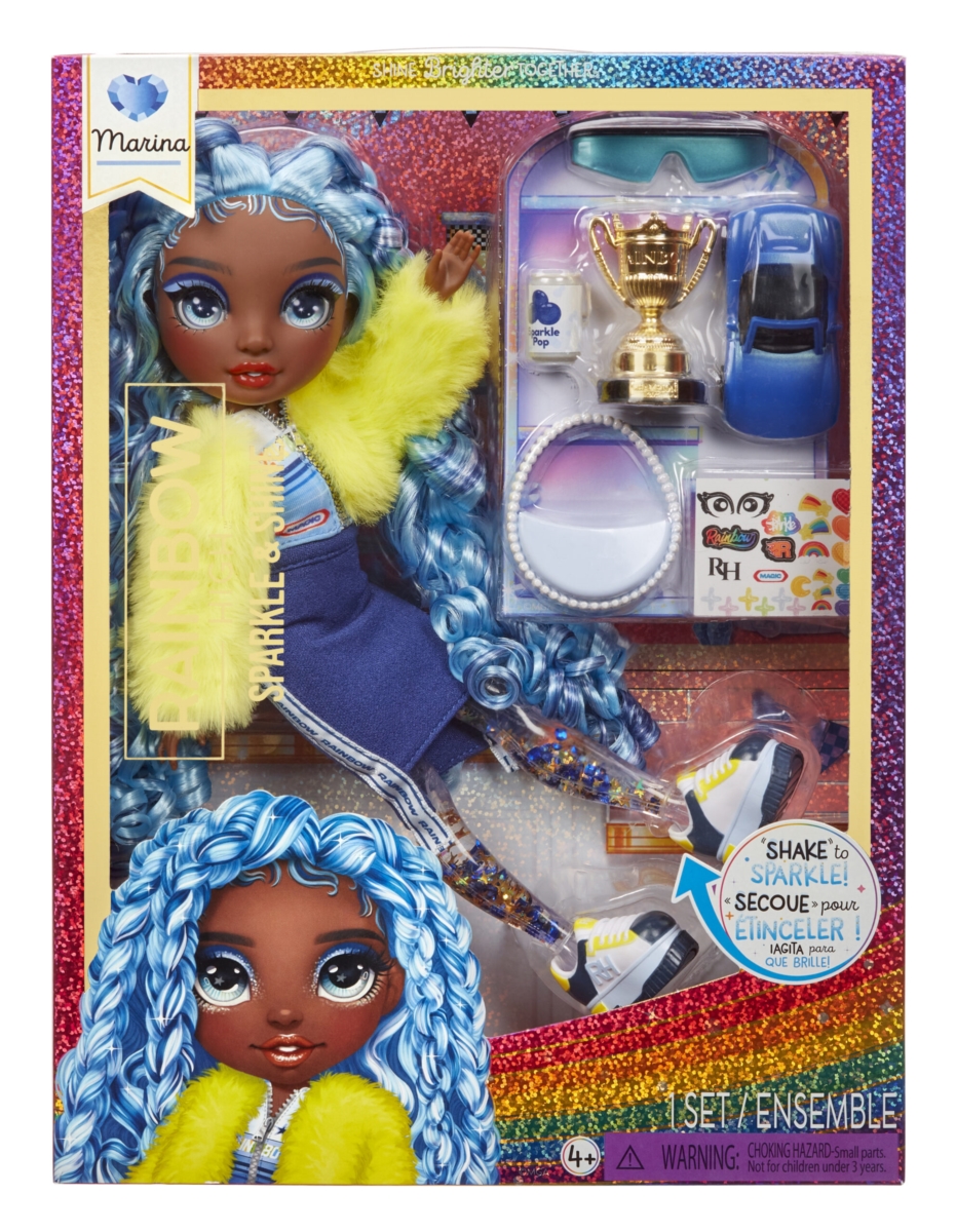 To jednak nie koniec – Marina przychodzi z zestawem fascynujących akcesoriów, które pomogą jej jeszcze bardziej błyszczeć. Od modnych okularów przeciwsłonecznych po trofeum mistrza i mały samochodzik – wszystko w tym zestawie zaprojektowano z myślą o maksymalnej zabawie. Odkryj magię, gdy "potrząśniesz, aby zaświeciła", aktywując lśniący efekt wewnątrz jej stroju dla dodatkowego efektu wow!