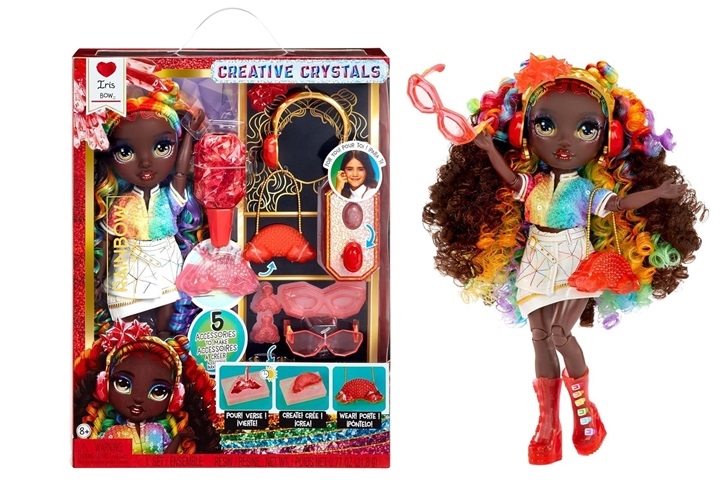 Rainbow High Creative Crystals – Lalka Iris z akcesoriami to doskonały wybór dla dzieci i kolekcjonerów, którzy chcą połączyć zabawę z kreatywnym tworzeniem unikalnych dodatków.