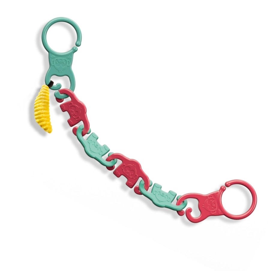 Twoje dziecko nie będzie się nudzić z tymi wesołymi małpkami do zabawy. Kolorowe ogniwa z małpkami można łączyć ze sobą, tworząc wesoły łańcuszek. Zestaw zawiera również mięciutkiego banana wykonanego z tkaniny. Jest wspaniały do zabawy! Łańcuszek można również przymocować do fotelika dziecięcego, wózka lub łóżeczka. Idealny w domu i w podróży!