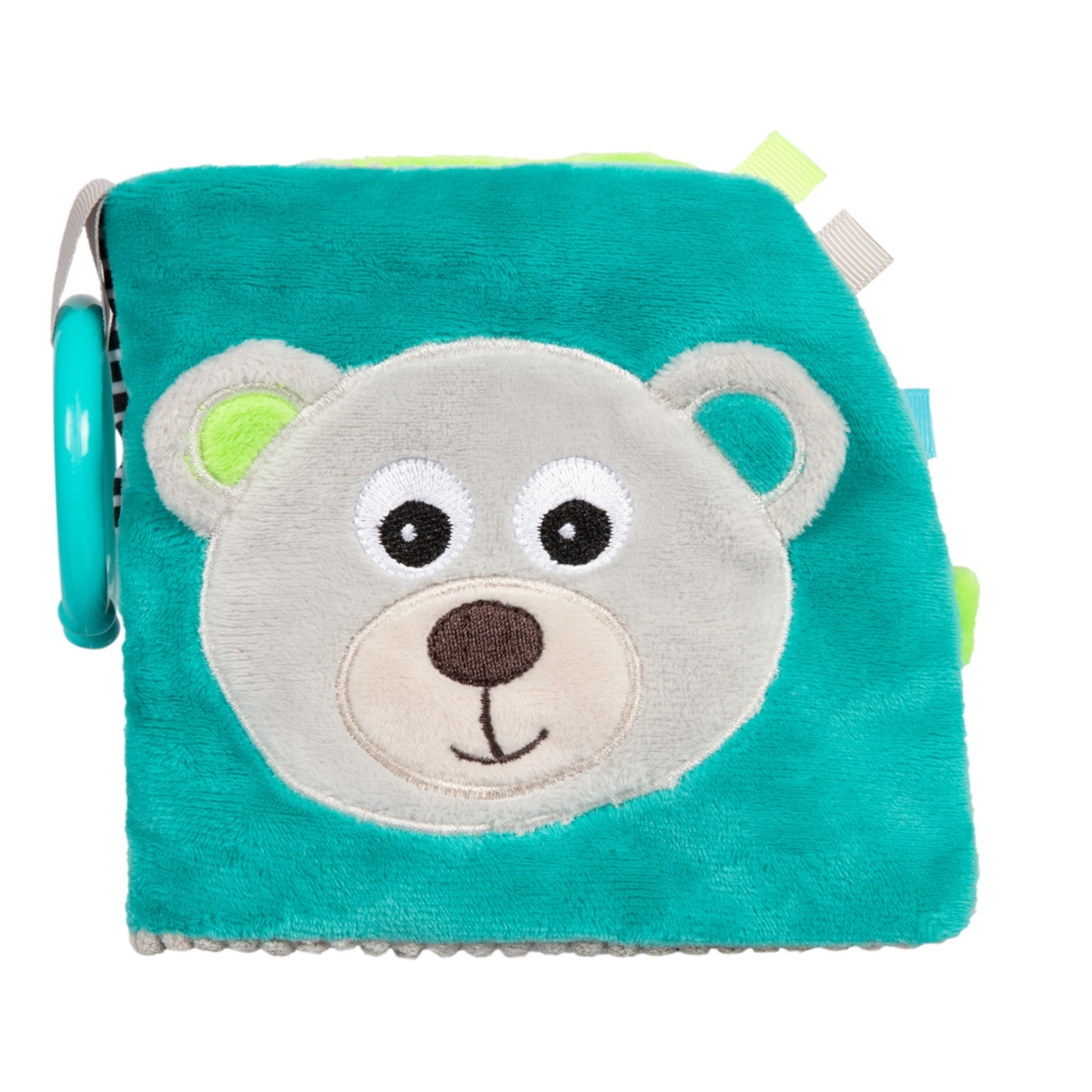 Książeczka edukacyjna BEARS kryje wiele niespodzianek, które zajmą dziecko na długi czas. Została wykonana zmiłego w dotyku materiału o różnorodnej teksturze. Posiada gryzak, piszczek, grzechotkę i elementy szeleszczące. Dodatkową atrakcją jest bezpieczne lusterko, które wzbudzi ciekawość dziecka. Książeczka doskonale stymuluje rozwój koordynacji wzrokowo-słuchowej i motorycznej dziecka. Praktyczny zaczep umożliwia przypięcie zabawki przy wózku lub łóżeczku. Przeznaczona jest dla dzieci 0m+.