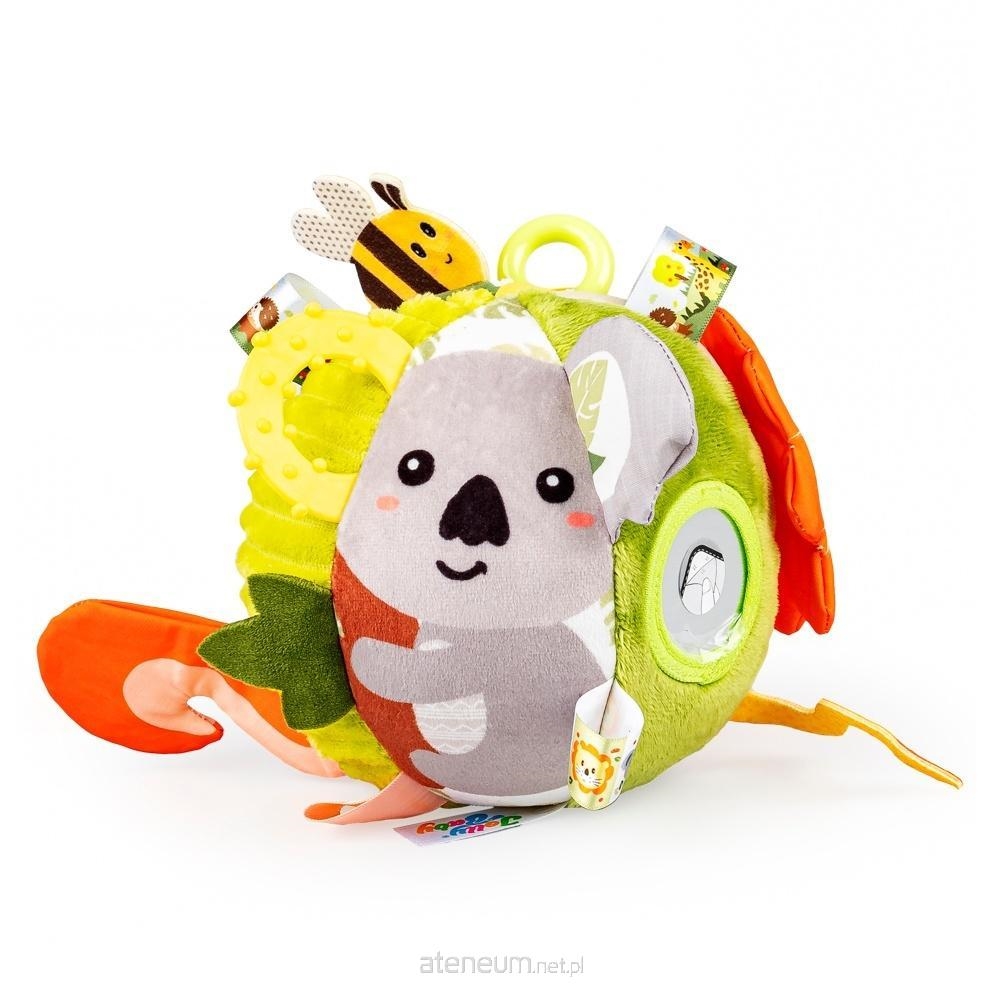 Poznaj świat dzikiej przyrody, zamknięty w przyjaznej, pluszowej odsłonie! Kolorowa piłeczka ozdobiona trzema uroczymi zwierzakami zapewni najmłodszym wesołą i rozwojową zabawę. Na małe paluszki czeka tu wiele sensorycznych niezpodzianek: szeleszczące elementy zwierzaków (lwia głowa i wiewiórczy ogonek), piszczące ucho koali, ruchome pierścienie do przesuwania, doszyte metki oraz zróżnicowane faktury materiałów. Na ściance piłeczki bobas znajdzie także bezpieczne lusterko do samopoznania, a w jej wnętrzu ukryty dzwoneczek, który przy potrząsaniu piłeczką wydaje piękny dźwięk.