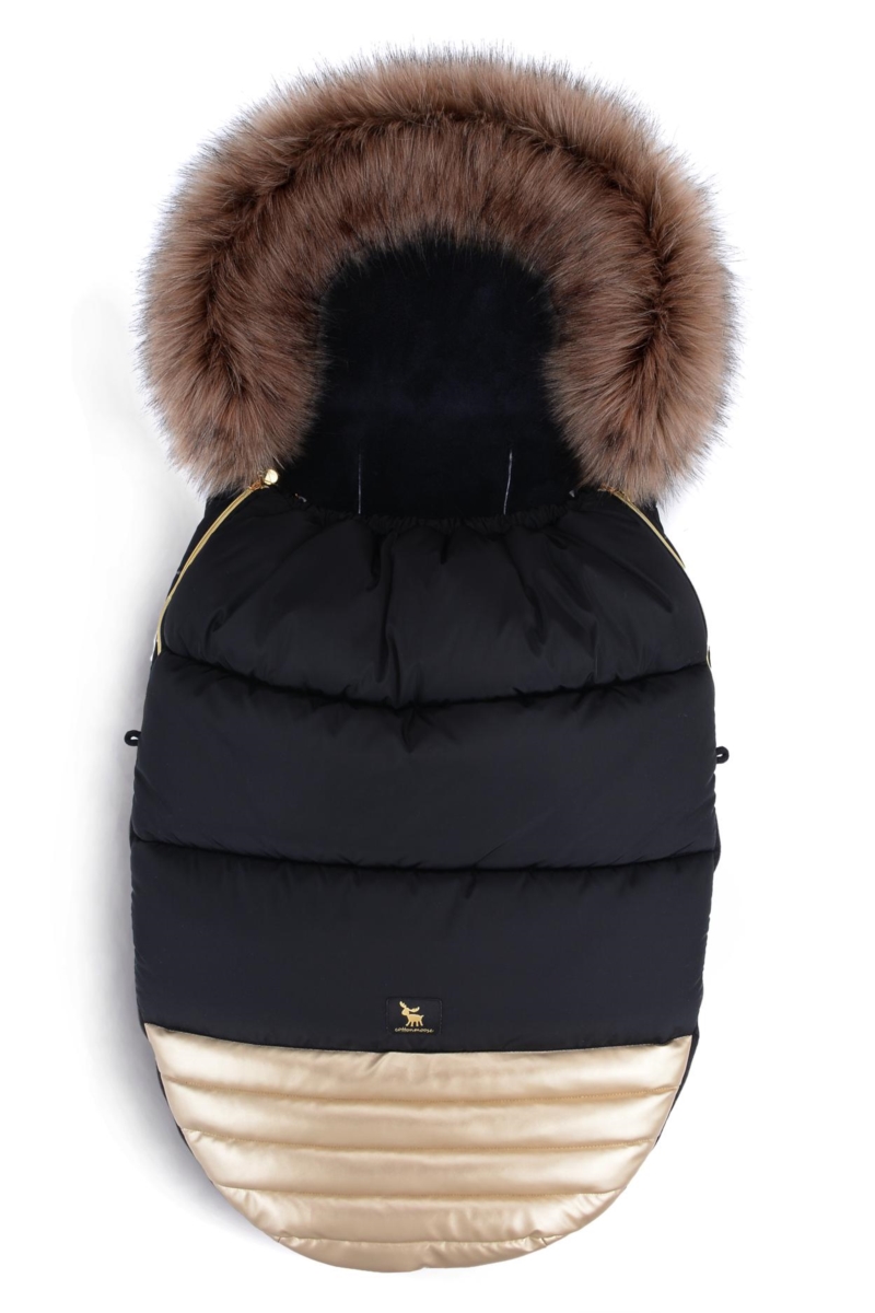 Kapturek śpiworka wykończony jest odpinanym, miękkim, antyalergicznym, ekologicznym futerkiem. Sznurek w kapturze ze stoperem umożliwia regulowanie wielkości kaptura i precyzyjne otulenie główki dziecka. Znajdujące się w dolnej części śpiworka duże zaszewki zapewniają wygodną przestrzeń na nóżki. Wewnątrz śpiworka wszyta jest tkanina o większej odporności na zabrudzenia powodowane przez brudne buciki.