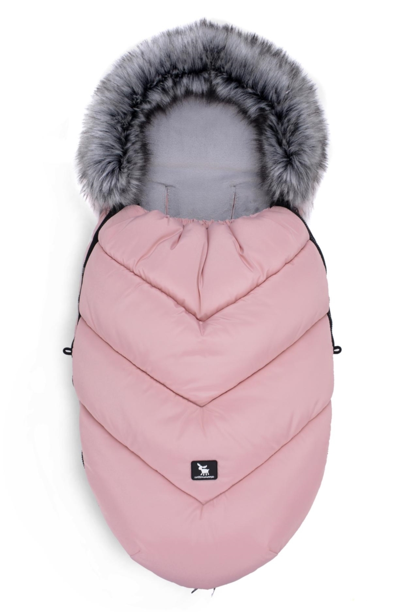 Kapturek śpiworka wykończony jest odpinanym, miękkim, antyalergicznym, ekologicznym futerkiem. Sznurek w kapturze ze stoperem umożliwia regulowanie wielkości kaptura i precyzyjne otulenie główki dziecka. Znajdujące się w dolnej części śpiworka duże zaszewki zapewniają wygodną przestrzeń na nóżki. Wewnątrz śpiworka wszyta jest tkanina o większej odporności na zabrudzenia powodowane przez brudne buciki.