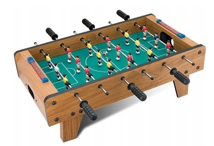 Drewniany stół do gry w piłkarzyki rozbudzi piłkarskie emocje zarówno w młodszych, jak i starszych chłopcach.