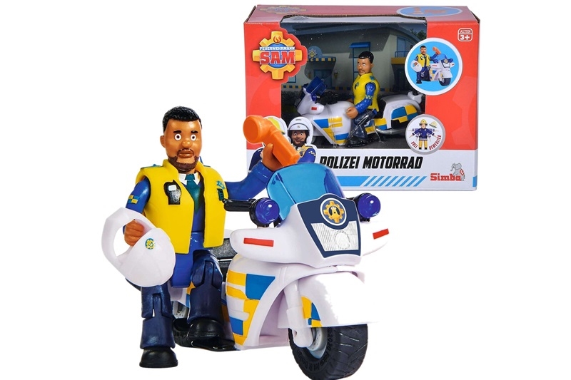 Motocykl policyjny to jeden z pojazdów ratowniczych, które pomagają strażakowi Samowi i jego zespołowi podczas interwencji.