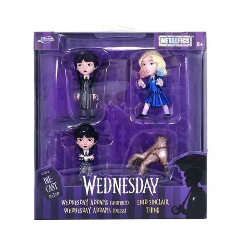 Odkryj wyjątkowy zestaw figurek Wednesday od Jada! Ten 4-pak zawiera cztery urocze figurki przedstawiające postacie z popularnego serialu „Wednesday”, idealne dla fanów zarówno młodszych, jak i starszych.