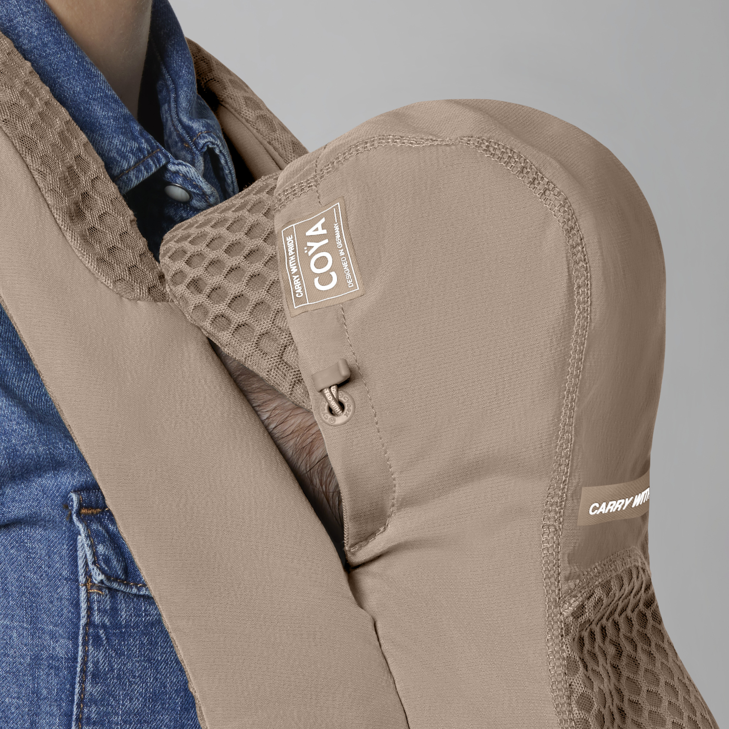 Doskonały przepływ powietrza. Bliskość rodzica i uczucie chłodu w podróży mają kluczowe znaczenie dla dziecka. Panel tylny, pas biodrowy i pasy naramienne Coya Carrier wykonane są z dzianinowej siateczki 3D, zapewniając dziecku i opiekunowi wygodę oraz przewiewność, w szczególności w gorące i wilgotne dni.