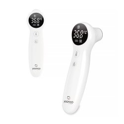 Termometr Yoonco do ucha i czoła mierzy temperaturę przy pomocy specjalnej końcówki. Umieszcza się ją w kanale słuchowym lub przykłada do czoła dziecka, uzyskując dokładny wynik. Model ten zapamiętuje 10 ostatnich odczytów, a także ostrzega o podwyższonej temperaturze.