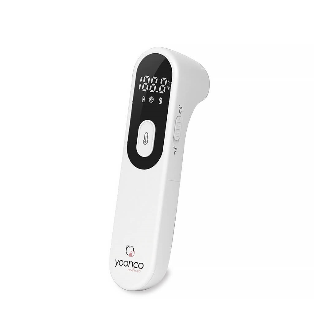 Termometry Yoonco Medical wykorzystują technologię podczerwieni i występują w kilku wariantach do wyboru. Termometr bezdotykowy Yoonco wystarczy zbliżyć do czoła lub innego wybranego obszaru ciała niemowlęcia na kilka centymetrów, i wcisnąć przycisk. Co więcej, termometrem tym można zmierzyć również temperaturę pokarmu czy przedmiotów w otoczeniu. Termometr bezdotykowy Yoonco zapamiętuje ostatni odczyt, a funkcja automatycznego wyłączania pozwala oszczędzać baterię.