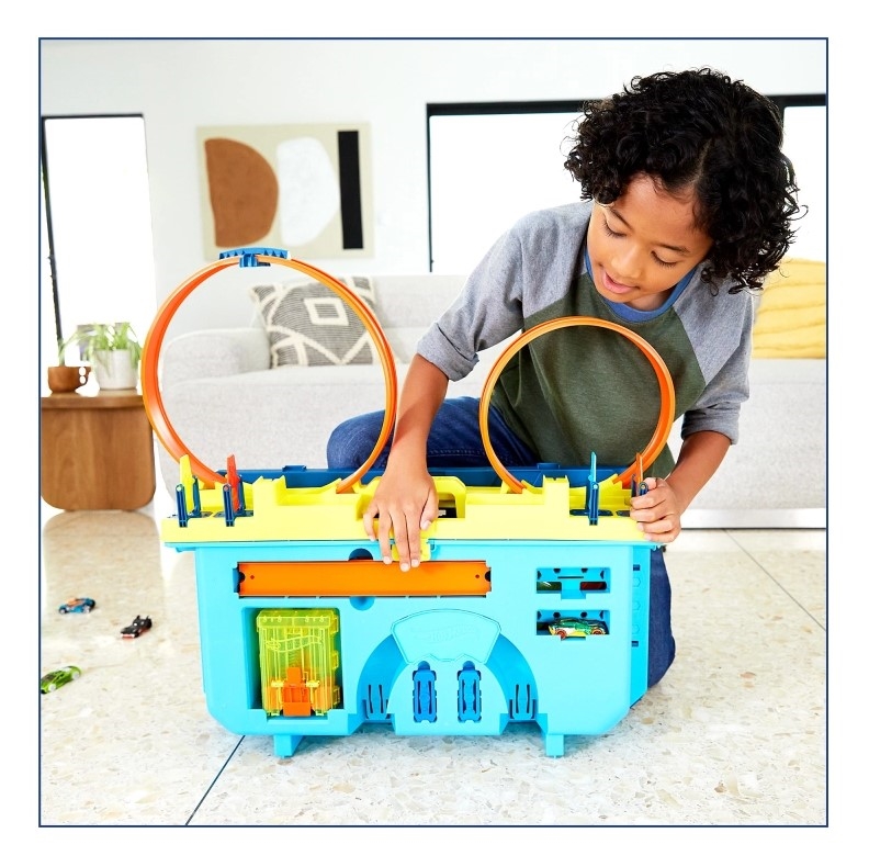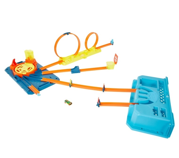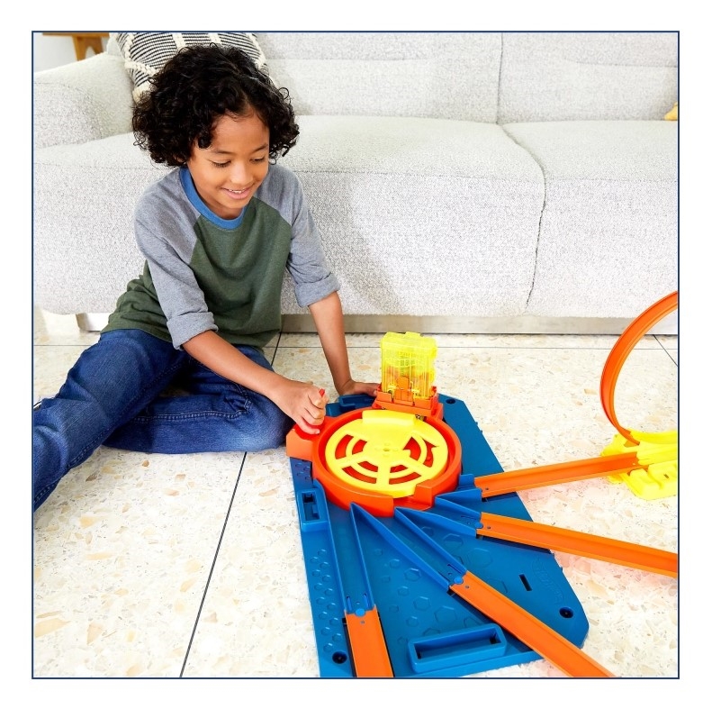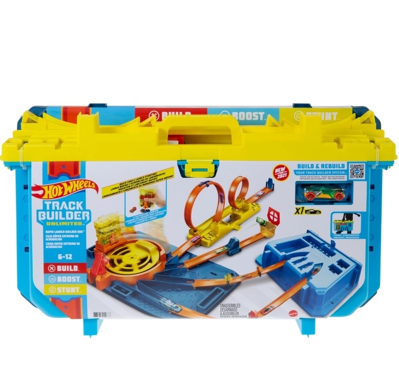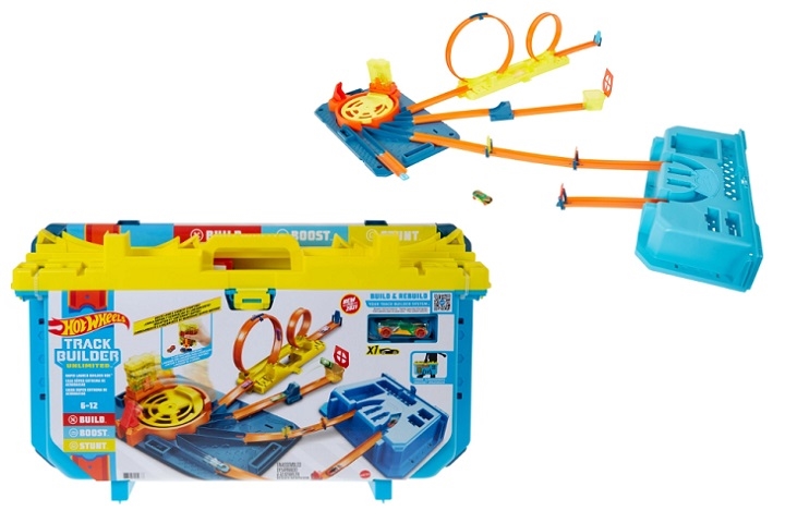 Turbowyrzutnia Zestaw Pudełko od Hot Wheels Track Builder Unlimited zawiera wszystko, czego potrzebujesz, by skonstruować tor, który zachwyci każdego fana Hot Wheels. Zawiera on elementy niezbędne do zbudowania trzech wyjątkowych tras kaskaderskich: z podwójnymi pętlami, skokiem z rampy lub trudnym torem, na którym samochody muszą pognać przez zakręt, zanim wyruszą ku dalszym rajdowym przygodom. Użyj innowacyjnego „magazynka” na 4 autka, aby załadować samochodziki do wirującej wyrzutni, która posyła je na jedną z tras. Turbowyrzutnia Zestaw Pudełko od Hot Wheels Track Builder Unlimited ma zewnętrzne otwory, w których można bezpiecznie i wygodnie przechowywać akcesoria po skończonej zabawie. Dodatkowe elementy toru (sprzedawane osobno) również zmieszczą się w pudełku. Kolory i elementy dekoracyjne mogą się różnić. Turbowyrzutnia Zestaw Pudełko od Hot Wheels Track Builder Unlimited zawiera 30 elementów do zbudowania toru, dzięki którym możesz stworzyć własną niesamowitą trasę do popisów rajdowych i kaskaderskich. · Do wyboru masz aż 3 trasy kaskaderskie, aby eksperymentować z mocą i prędkością, a do tego rozwijać umiejętności rozwiązywania problemów poprzez pełną akcji zabawę z autkami. Turbowyrzutnia Zestaw Pudełko od Hot Wheels Track Builder Unlimited to niesamowity prezent dla dzieci od 6 roku życia, które dopiero zaczynają swoją przygodę z Hot Wheels, a także doświadczonych fanów wyścigów szukających nowych wyzwań oraz większych emocji i prędkości.