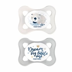 Nowy MINI smoczek przeznaczony jest dla niemowląt w wieku 0-2 m. Został zaprojektowany by zapewnić komfort nawet szczególnie małym niemowlętom. Wg 100% logopedów nie obciąża zgryzu* dziecka, co jest istotne dla prawidłowego rozwoju jamy ustnej. Wyjątkowo mała gumka smoczka - najmniejsza symetryczna gumka w ofercie, wykonana z miękkiego 100% hipoalergicznego silikonu, jest akceptowane przez dzieci i zaspokaja odruch ssania. Mini smoczek posiada małą, wyjątkowo lekką tarczkę bez uchwytów. Jej profilowany pod noskiem kształt, niewielka waga oraz duże otwory wentylacyjne zapewniają maksymalny komfort i chronią delikatną skórę niemowląt przed podrażnieniami. Produkt dostępny w dwóch setach kolorystycznych, dla dziewczynki i chłopca.