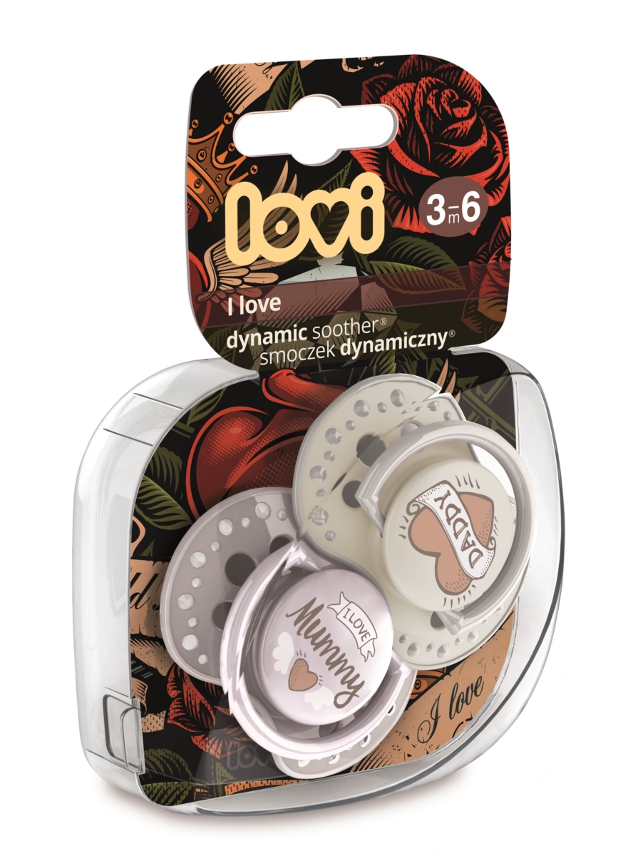 Ponieważ promowanie karmienia piersią jest ważną częścią misji marki LOVI, smoczek dynamiczny 3-6 m 2 szt. I Love posiada gumkę dynamiczną, zbudowaną z niejednorodnej warstwy silikonu, dzięki czemu rozciąga się i kurczy zgodnie z rytmem ssania dziecka.