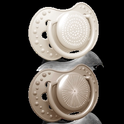 Obawiasz się, że stosowanie smoczka uspokajającego może utrudnić karmienie piersią? Szukasz akcesoriów dla małych dziewczynek w stonowanych kolorach ozdobionych delikatnymi wzorami? Wybierz smoczek silikonowy dynamiczny LOVI 18 m+ 2 szt. Harmony Girl. Smoczki z kolekcji Harmony występują w kolorach ziemi a umieszczone na nich minimalistyczne grafiki nawiązują do harmonii z naturą.