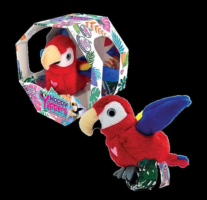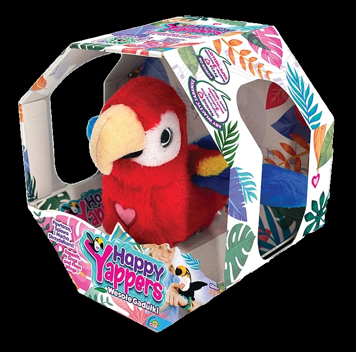 Happy Yappers /IT-9594/ Wesołe Gadułki - Czerwona papuga Interaktywna pluszowa czerwona papuga z serii Happy Yappers. Zabawka reaguje na dźwięki i ruch - porusza się, wydaje odgłosy i "gada", zapewniając dzieciom dużo radości i śmiechu.Wykonana z miękkiego, bezpiecznego materiału.Idealna do zabawy i przytulania. Happy Yappers - Wesołe Gadułki Interaktywne pluszowe ptaki, które śpiewają, mówią, potrząsają skrzydłami i rozmawiają między sobą. Zabawki ładują się przez USB - bez wymiany baterii. Dostępne modele (sprzedawane osobno): * Tukan * Flaming * Wilga * Czerwona papuga * Kakadu * Niebieska papuga Specyfikacja (dot. wszystkich modeli): * Wysokość: ok. 20cm * Zasilanie: wbudowana bateria, ładowanie przez USB (kabel w zestawie) * Odtwarzanie dźwięku: "gadające" interakcje, odgłosy ptaków * Funkcjonalności: flapping wings, samoczynne rozmowy między ptakami, możliwość powtarzania słów * Materiał: miękki, bezpieczny plusz * Rekomendowany wiek: 3+ * Wysokość zabawki: ok. 20 cm * Wymiary opakowania: ok. 20 x 12 x 10 cm * Waga: ok. 0,3 kg * Zasilanie: Zabawki ładują się przez USB - bez wymiany baterii. * Rekomendowany wiek: 3+ Zabawka posiada funkcję automatycznego wyłączenia po czasie bezczynności. Produkt oficjalny, oryginalny.