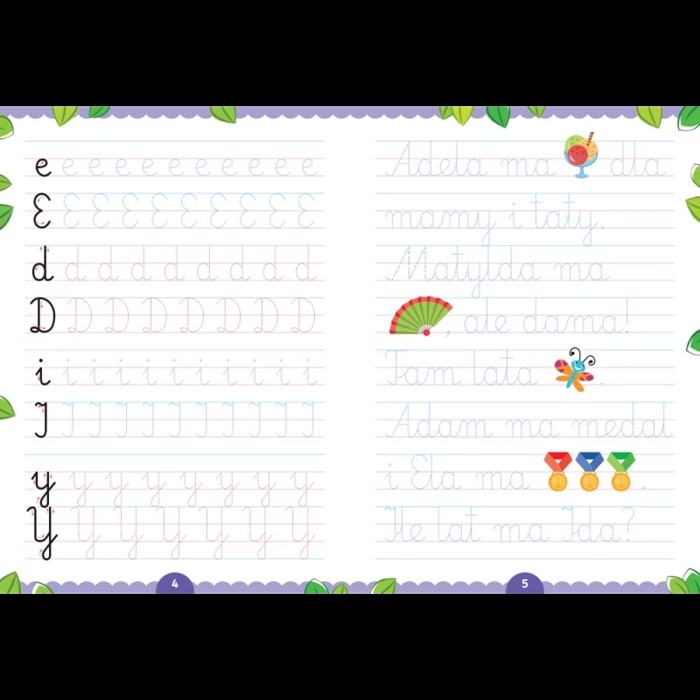 poćwiczą pisanie i poznają łączenia liter w wyrazach oraz krótkich zdaniach,