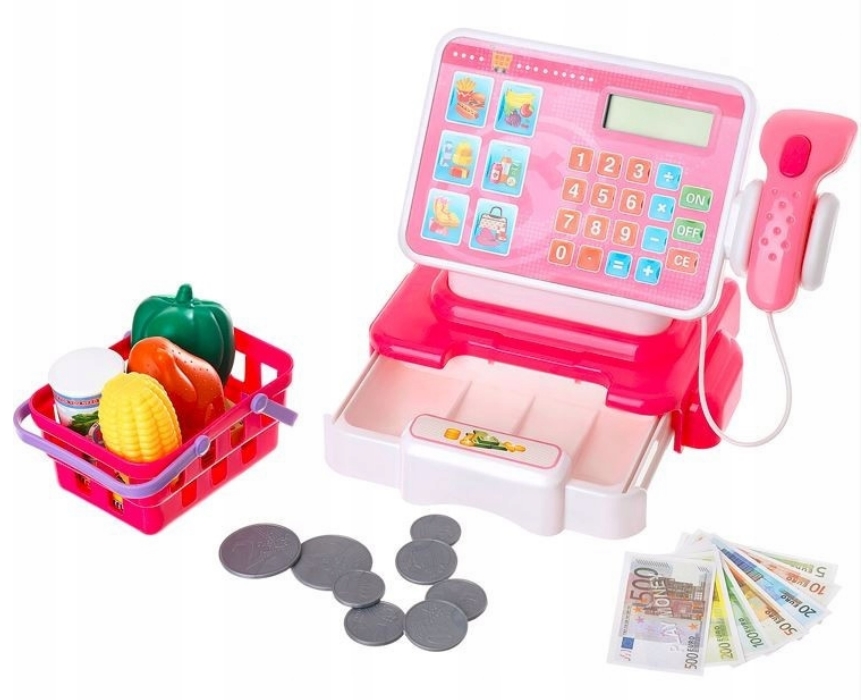Każde dziecko uwielbia zabawę w sklep. Dlatego będzie zadowolone z kasy z dotykowym ekranem i skanerem do towarów. Pudełko zawiera również koszyk pełen zakupów oraz pieniądze euro papierkowe i bilon. Kasa wydaje realistyczne dźwięki , dlatego zabawa będzie atrakcyjna i długo się znudzi. Umożliwi dziecku naukę cyferek , pozwoli poznać wartość pieniądza. Podczas wydawania reszty dziecko będzie ćwiczyć dodawanie i odejmowanie. Zabawa i edukacja w jednym.