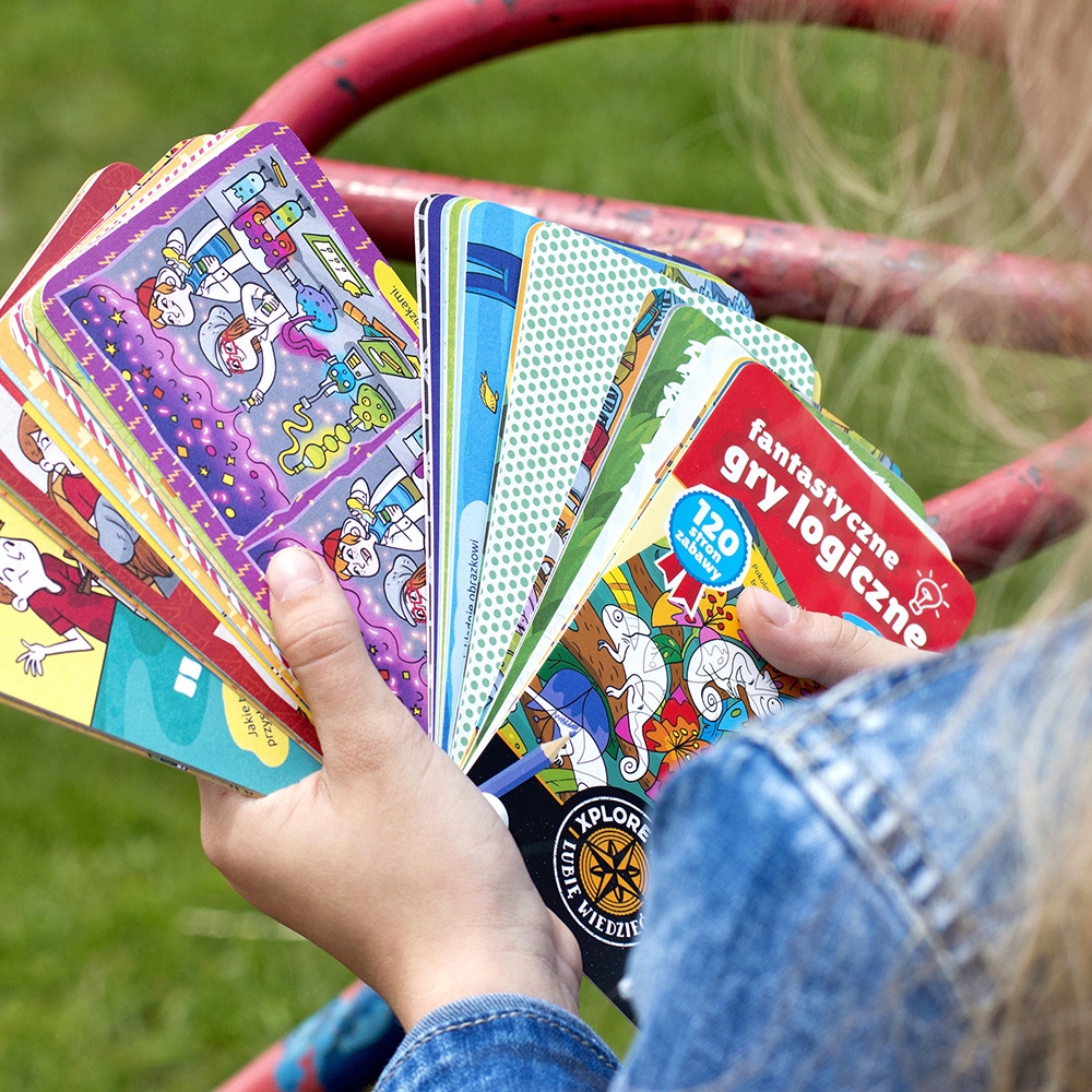 Dobrze wiemy, czym jest radość odkrywania! Wybierzcie interesujące was zadania i sprawdźcie wiedzę, nie tylko swoją! Kolorujcie obrazki, rozwiązujcie rebusy i różnorodne łamigłówki, przeczytajcie ciekawostki i zainspirujcie się do własnych poszukiwań. To doskonały sposób na naukę przez zabawę i spędzanie czasu. Dlatego weźcie książeczkę do plecaka i xplorujcie razem świat!