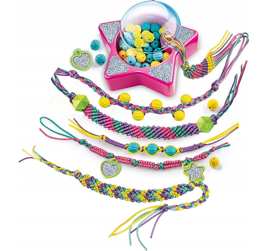 Zestaw do tworzenia bransoletek przyjaźni, w wesołej kolorystyce i w eleganckim oraz modnym stylu! Zabawka zawiera specjalne urządzenie do zaplatania bransoletek z kolorowych sznureczków i koralików. Mnóstwo kolorowych koralików do ozdabiania kreacji! Wspaniałe zajęcie i gwarantowana zabawa, również z przyjaciółmi. Zabawka opracowana i zaprojektowana we Włoszech.