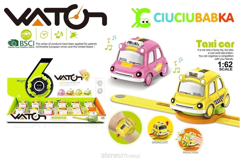 zegarek z odpinanym samochodzikiem , który gra, świeci, dodatkowo po naciśnięciu przedniej szyby uruchamia się sensor, który zmienia funkcje świetlno - dźwiękowe