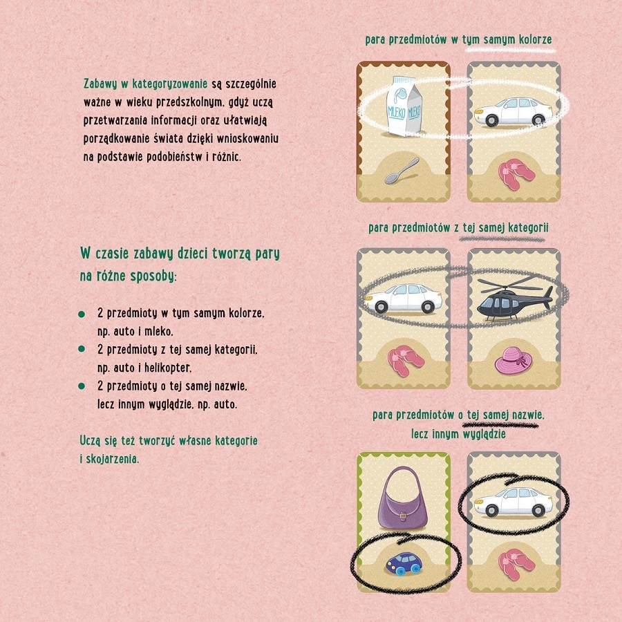 Feluś i Gucio grają w pary to aktywizująca gra edukacyjna kształtująca myślenie logiczne dzieci na różnych etapach wieku przedszkolnego. Gra wzmacnia koncentrację, uczy dostrzegania różnic i podobieństw oraz kategoryzowania przedmiotów. Dzięki tworzeniu par na różne sposoby dzieci rozwijają: spostrzegawczość, pamięć wzrokową oraz słownictwo. Doskonalenie procesów myślowych przedszkolaków to podstawa przygotowania dziecka do dalszych etapów edukacji. Zestaw doskonale się sprawdzi i w domu, i w przedszkolu.