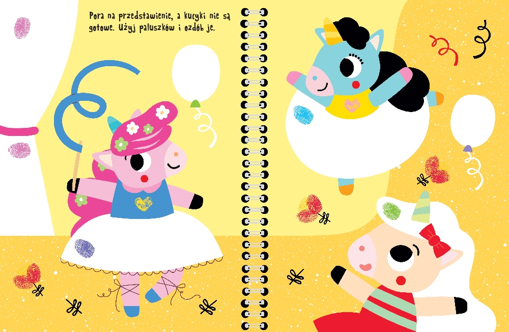"Paluszkowe malowanki" to aktywizujące książeczki sensoryczne dla dzieci. Zestaw kreatywnych zadań plastycznych oraz dołączony do książki panel z poduszeczkami nasączonymi tuszami w siedmiu kolorach gwarantują świetną zabawę.